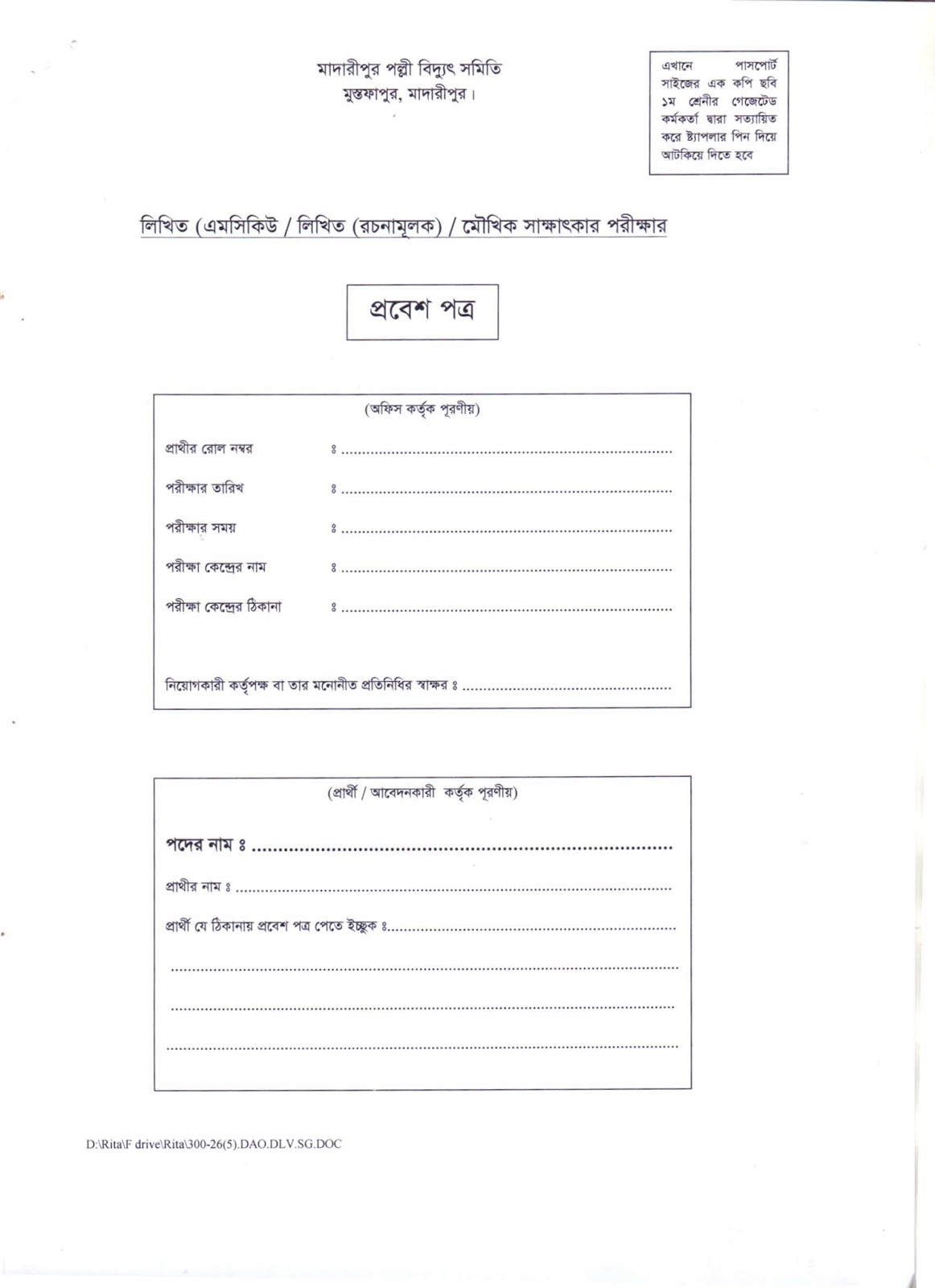 8. Madaripur Palli Bidyut Samity Job Application Form: